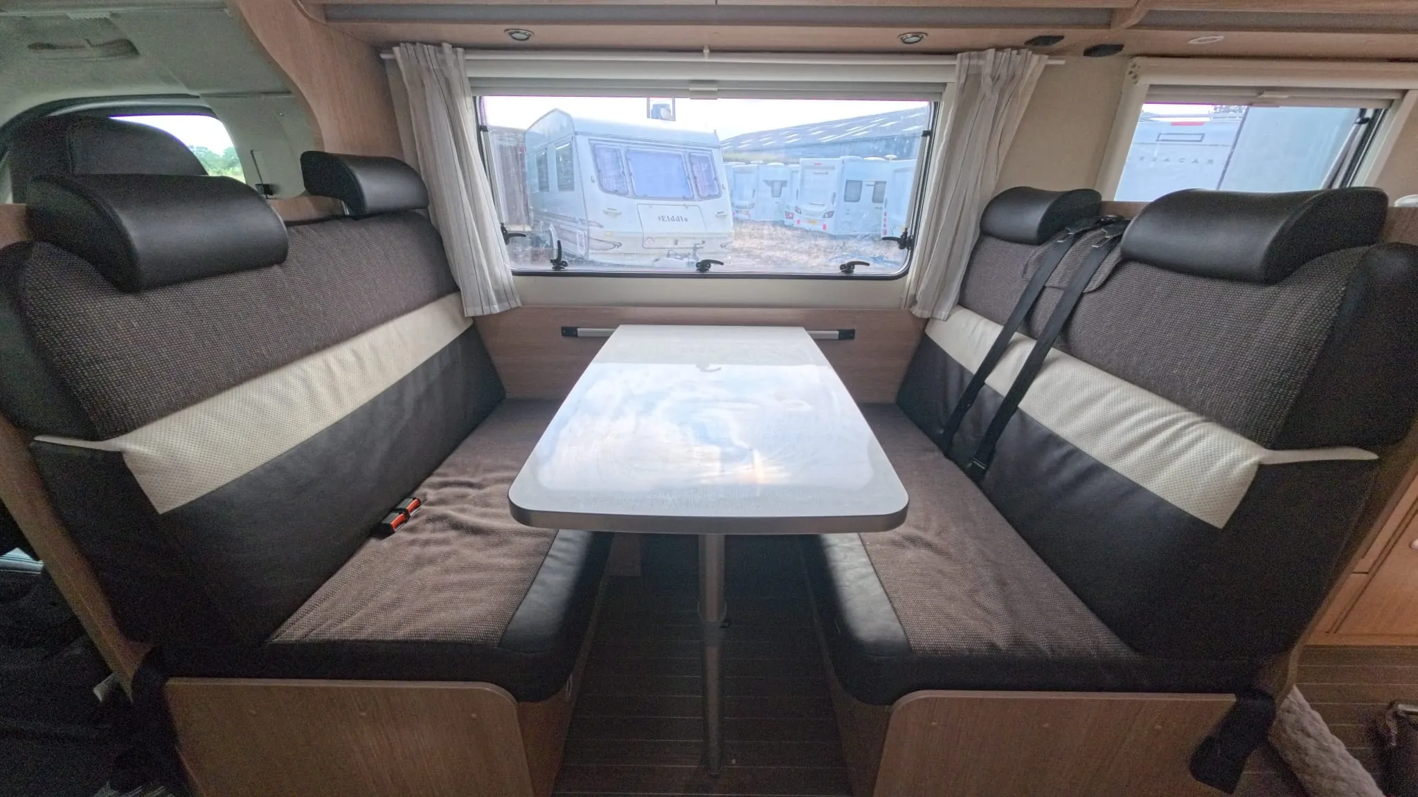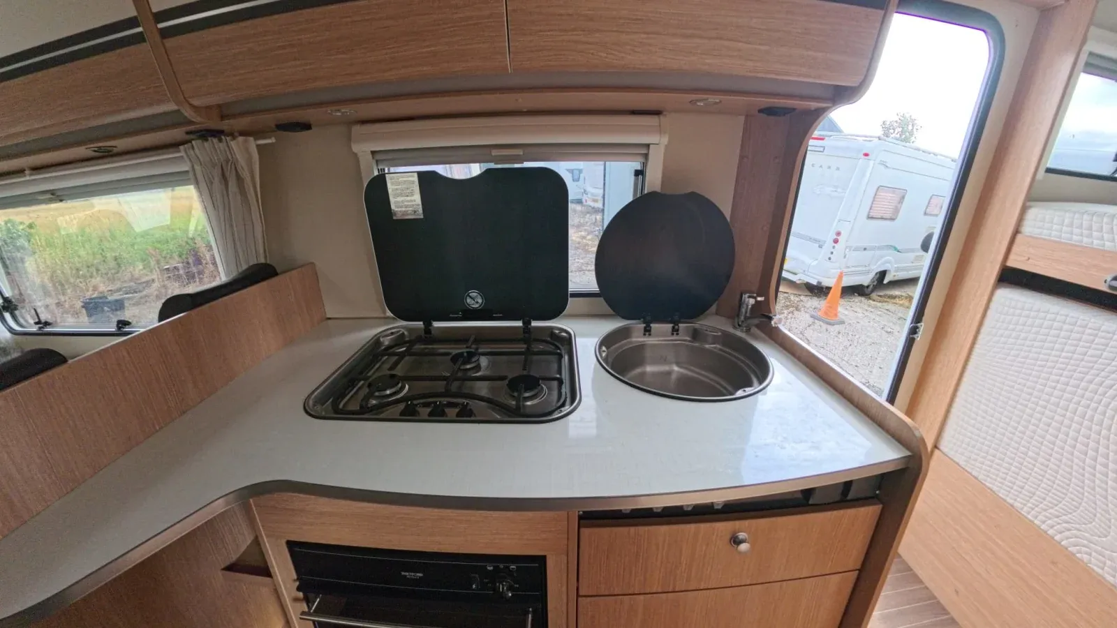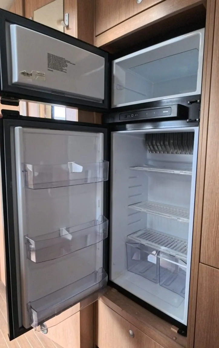 The motorhome is equipped with a spacious fridge/freezer that runs off calor gas, 240 mains hookup or from the vehicle's alternator when driving.